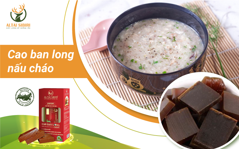 Gạo xát sạch, nấu nhừ thành cháo trắng sau đó bỏ Cao ban long đã thái nhỏ, băm nhuyễn vào, khuấy đều khoảng 5-10 phút rồi tắt bếp. Khi cho trẻ ăn có thể cho thêm ruốc thịt hoặc đường để trẻ quen và dễ ăn hơn.